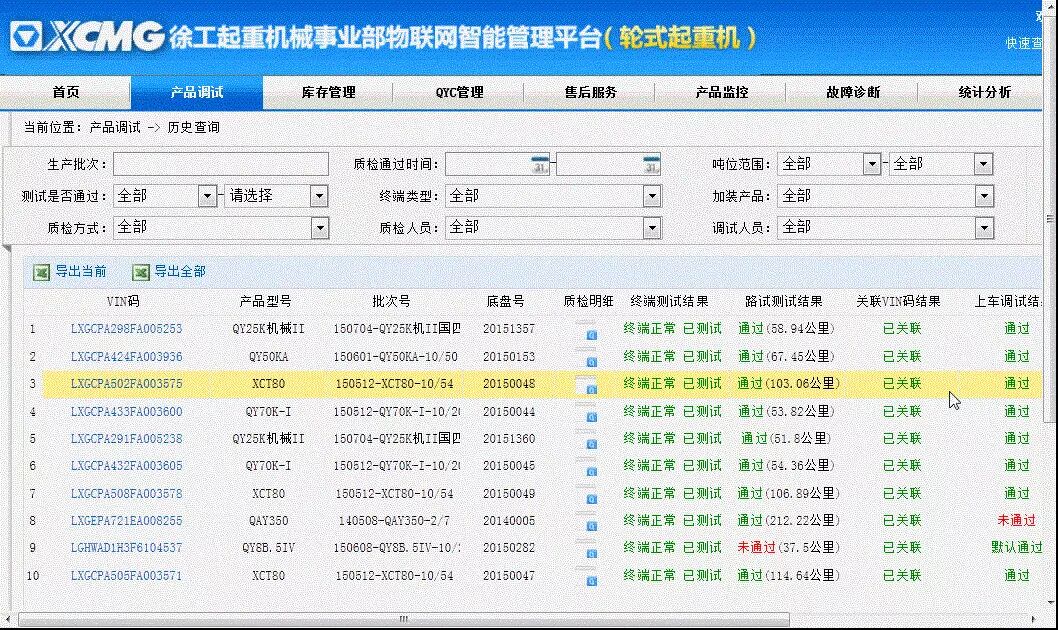 下一步徐工将重点打通企业内部生产信息化平台、车载物联网平台和服务平台。利用物联网回传的车辆施工数据,通过大数据挖掘分析手段,为每台起重机建立健康评估系统,实现对客户的主动提醒服务和健康诊断。